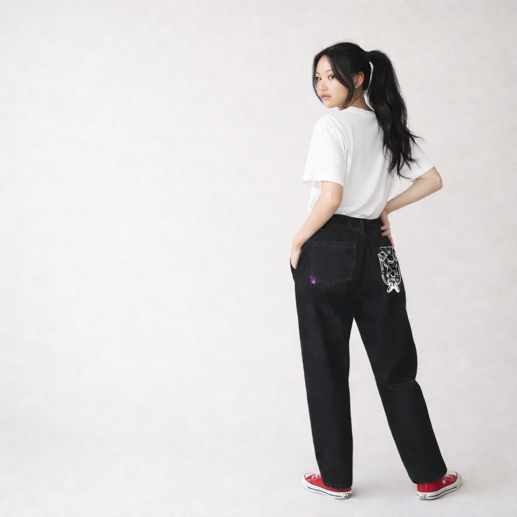 ストレッチデニムで動きを妨げず、テーパードシルエット。