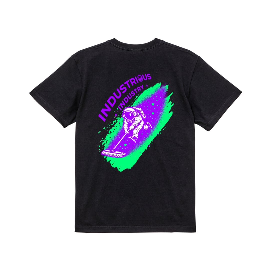 宇宙飛行士がモップで空間を塗り広げる、少しズレた妄想から生まれたグラフィック。