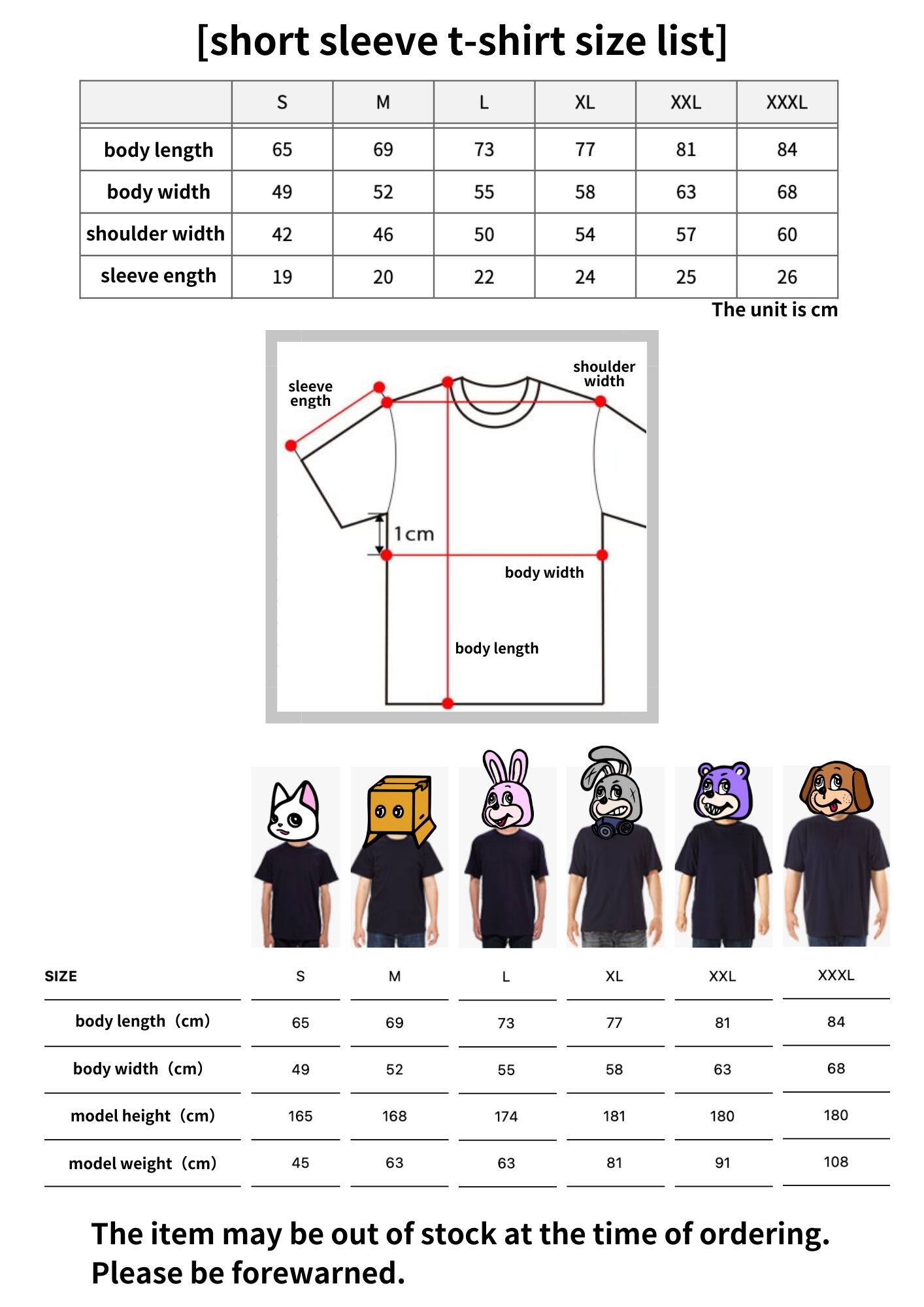 body length/body width/shoulder width/sleeve ength(cm)